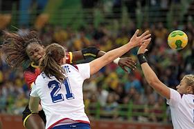 16.08. XXXI летние Олимпийские игры в Рио-де-Жанейро. Бокс. 1/4 финала по гандболу между женских команд. Матч между сборными командами России и Анголы.