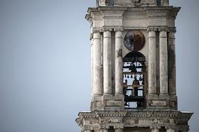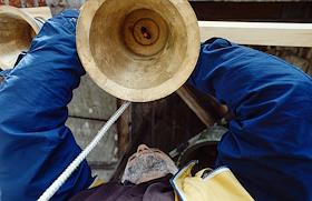 Установка колоколов на затопленную колокольню Никольского собора.