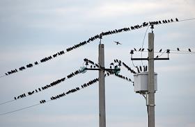 Жанровая фотография. Стая птиц на проводах.