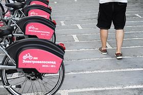 Церемония запуска проката городских электровелосипедов. Руководитель компании Velobike Глеб Нарожных…