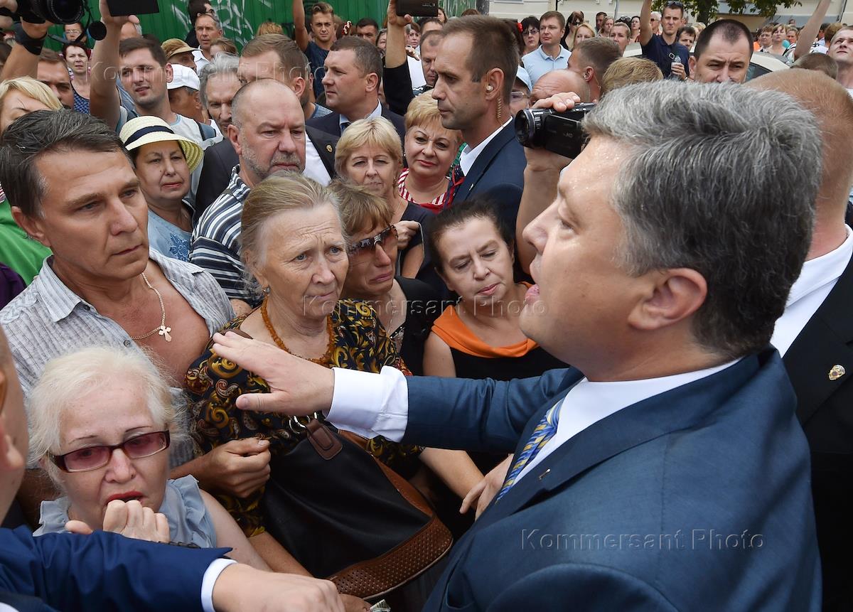 Общество Президент Петр Порошенко на встрече с обманутыми вкладчиками банка "Михайловский" по завершении торжественной церемонии поднятия Государственного Флага Украины по случаю Дня Флага.