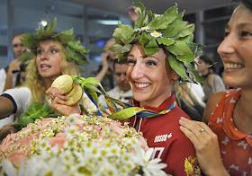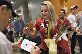 Член олимпийской сборной России по гандболу Владлена Бобровникова во время торжественной встречи …