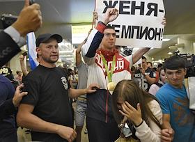 Члены олимпийской сборной команды России во время торжественной встречи «Золотого рейса» (SU 7151)…