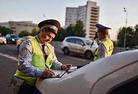 Жанровая фотография. Сотрудник ДПС ГИБДД оформляет документы на багажнике автомобиля.