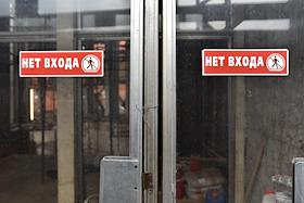 Жанровая фотография. Вывеска на входной двери станции Московского метрополитена "Сокол" "Нет входа".
