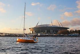 Виды Санкт-Петербург. Строительство футбольного стадиона "Зенит-Арена" на Крестовском острове.
