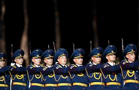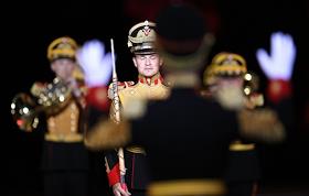Жанровая фотография. Участники Президентского оркестра России и военнослужащие роты специального…