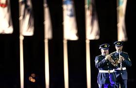 Выступление Кельтского оркестра волынок и барабанов на церемонии открытия Международного…