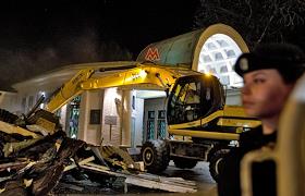 Снос зданий, построенных без разрешения около метро Кропоткинская.