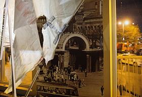 Жанровая фотография. Техника коммунальных служб города во время сноса зданий, построенных без…