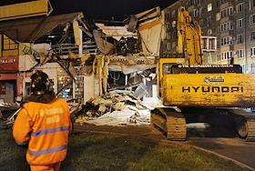 Жанровая фотография. Техника коммунальных служб города во время сноса зданий, построенных без…