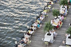 Виды Москвы. Летнее открытое кафе на набережной Москвы-реки.
