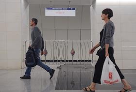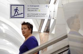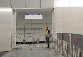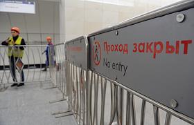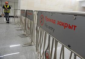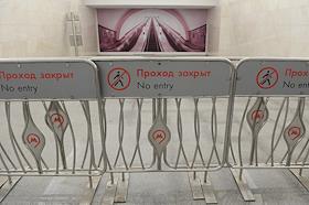 Второй зал станции метро "Петровско-Разумовская" (Петровско-Разумовская-2). Вывескаа "Проход закрыт".