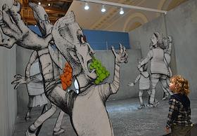 Экспонаты II Биеннале уличного искусства "Артмоссфера" в Центральном выставочном зале (ЦВЗ) "Манеж".