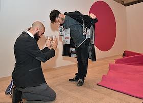 Посетитель перед экспонатом II Биеннале уличного искусства "Артмоссфера" в Центральном выставочном…
