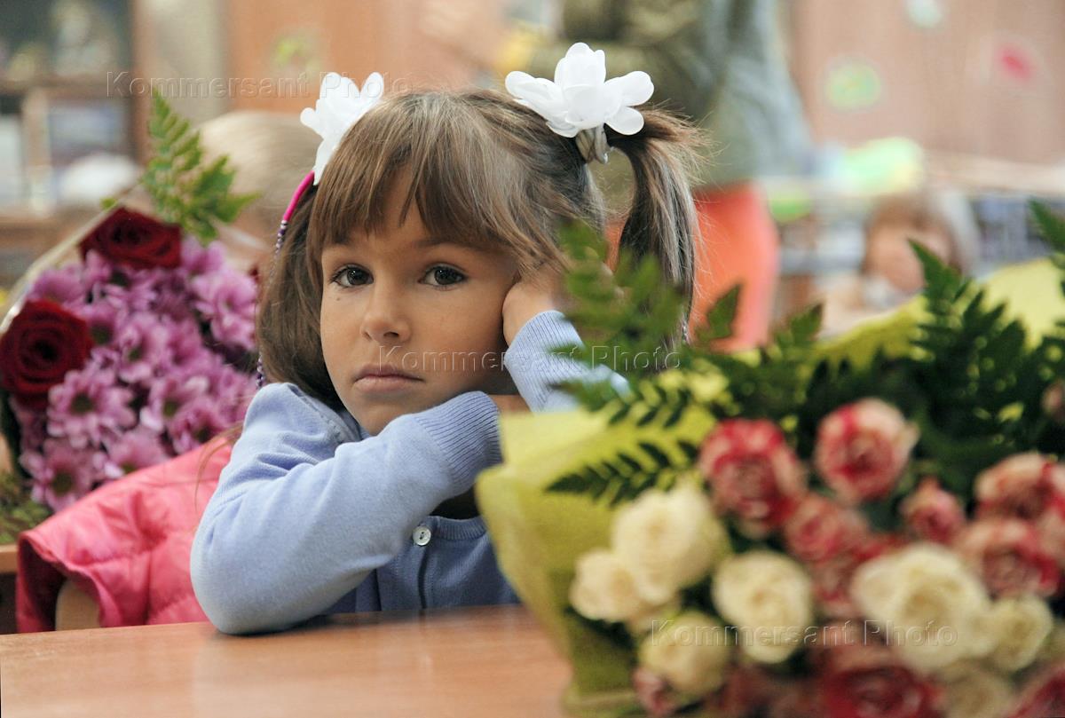 День знаний. Учащиеся на торжественном мероприятии посвященном началу учебного года, в школе Москвы.