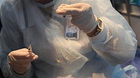Жанровая фотография. Медработник во время проведения бесплатной вакцинации от гриппа у станции…