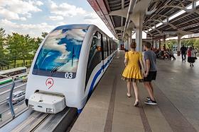 Жанровые фотографии. Городской транспорт. Московская монорельсова транспортная система. Платформа…