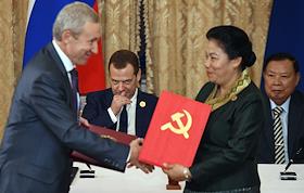 Политика Рабочая поездка председателя правительства Дмитрия Медведева в Лаос. Саммит Ассоциации стран Юго-Восточной Азии (АСЕАН) (11-го Восточноазиатского саммит (ВАС)). Встреча Дмитрия Медведева с Президентом Лаоса Буннянгом Ворачитом (По завершении встречи были подписаны следующие документы)