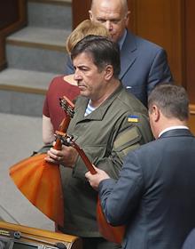 Заседание Верховной Рады Украины. Депутаты фракции "Народного фронта" принесли на заседание Рады…