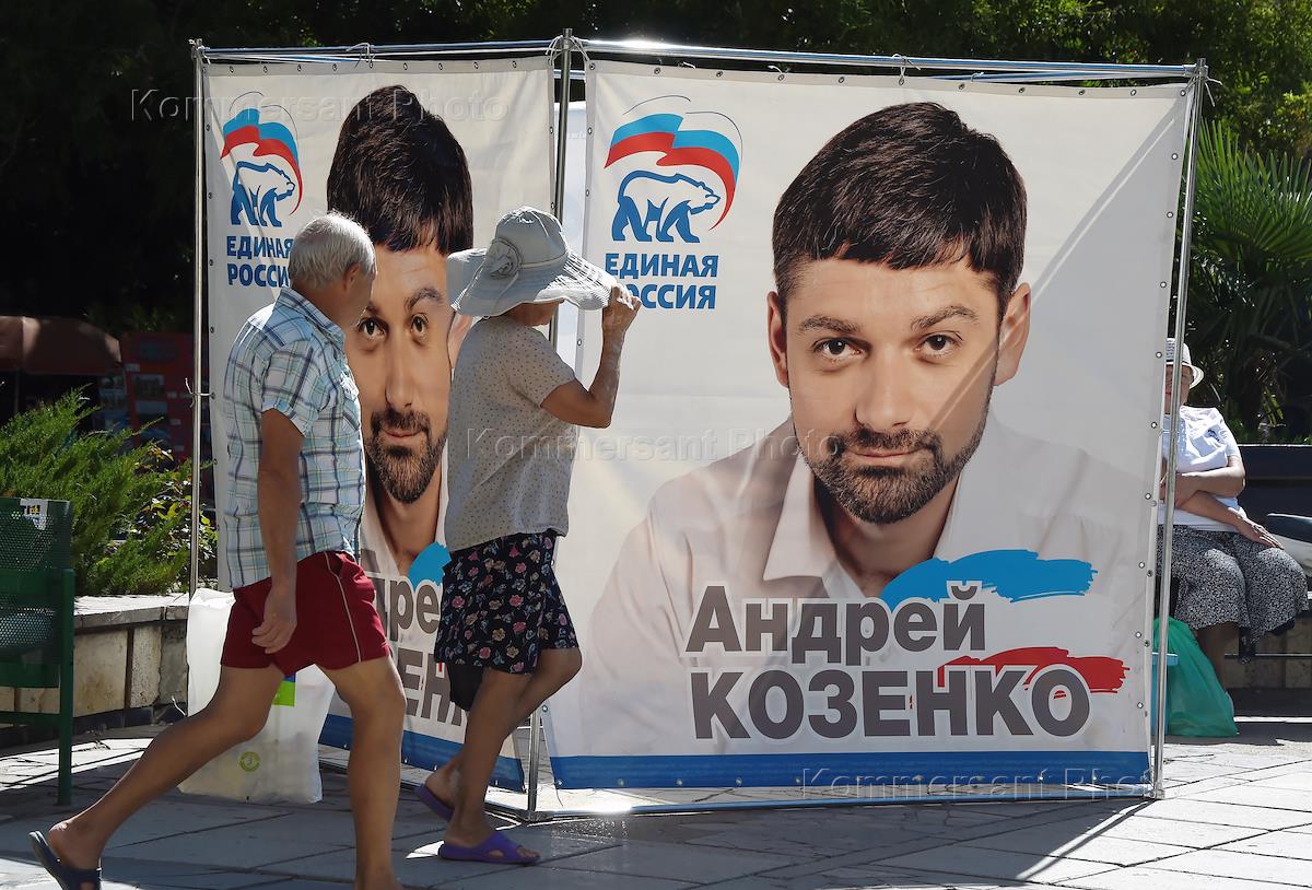 Жанровые на тему подготовки к выборам. Предвыборная агитация. Андрей Козенко ("Единая Россия"). Плакат Сергей Аксенов "Прорвем любые блокады"