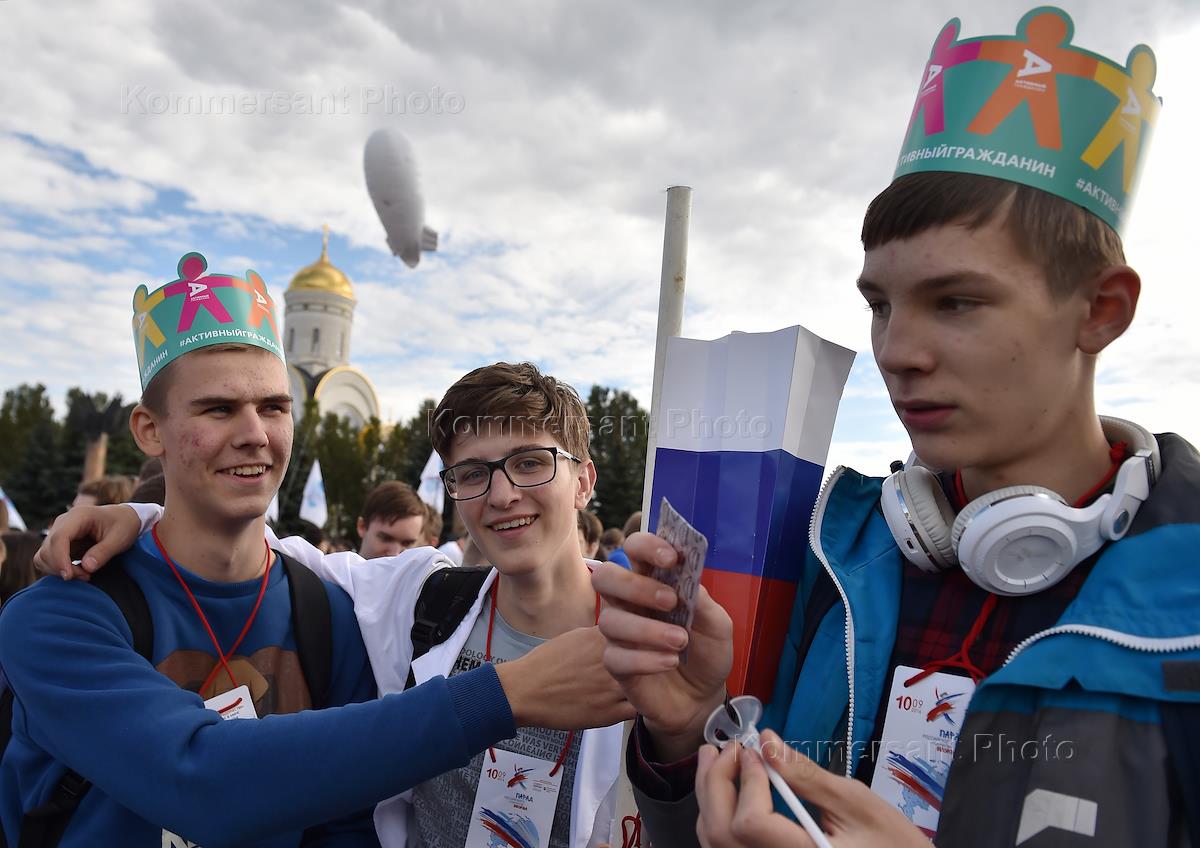 Общество День города в Москве. Прзадничные мероприятия. Парад российского студенчества, во время которого состоялось церемония посвящения в студенты. Церемония прошла в Парке Победы на Поклонной горе.