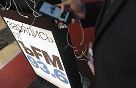 Жанровая фотография. Груда брусчатки и указатель "Билайн" во время проведения 2-й Международной…