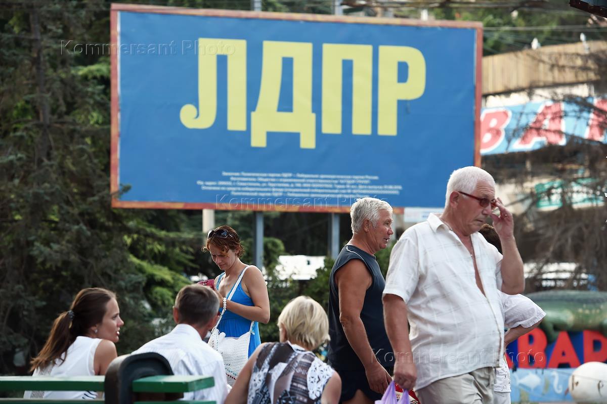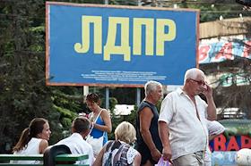Выборы депутатов Государственной думы России VII созыва. Предвыборная агитация на улицах Ялты. Партий "Единая Рссия", ЛДПР,