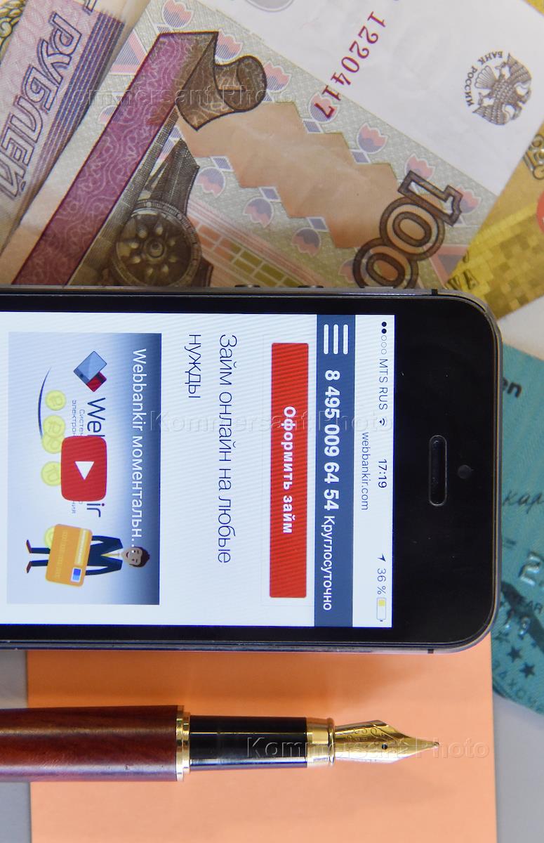 Жанровая фотография. Мобильное приложение Webbankir (Вэббанкир) на экране мобильного телефона,…