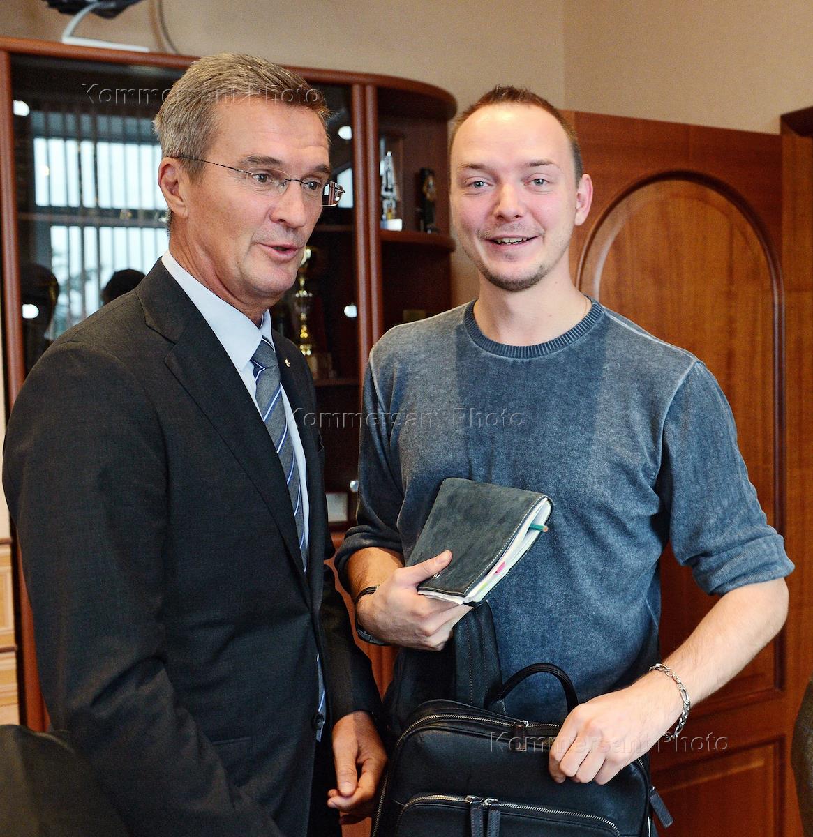 Журналист газеты "Коммерсантъ" Иван Сафронов (справа) и генеральный директор АО "Корпорация…