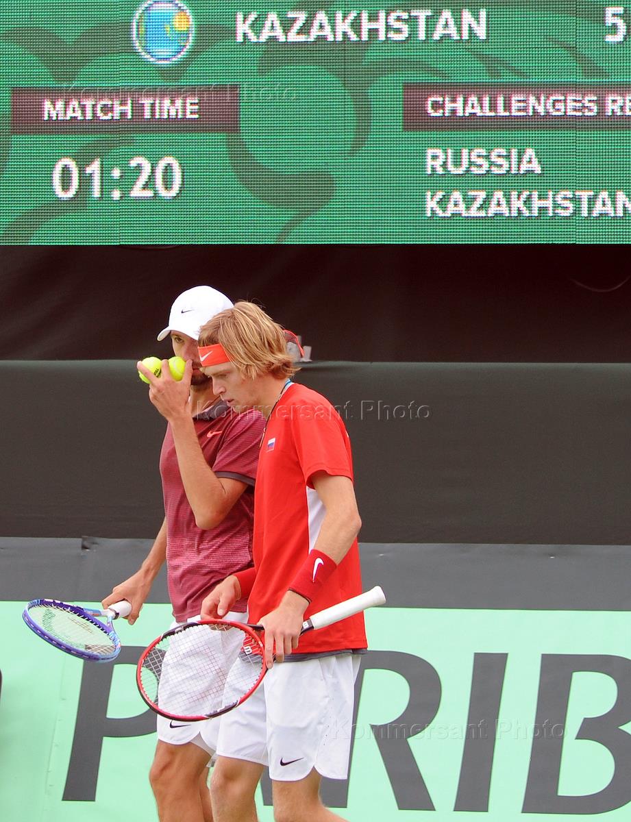 Матч плей-офф Кубка Дэвиса Россия-Казахчтан в Москве, парная встреча и одиночная Кузнецов-Кукушкин