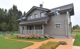 Готовый дом в загородном комплексе Honka Club. Фасадный вид дома и придомой территории.
