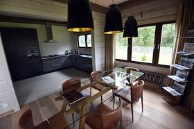 Готовый дом в загородном комплексе Honka Club. Столовая комната с видом на кухонную зону.