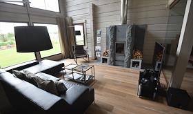 Готовый дом в загородном комплексе Honka Club. Гостиная комната с камином.