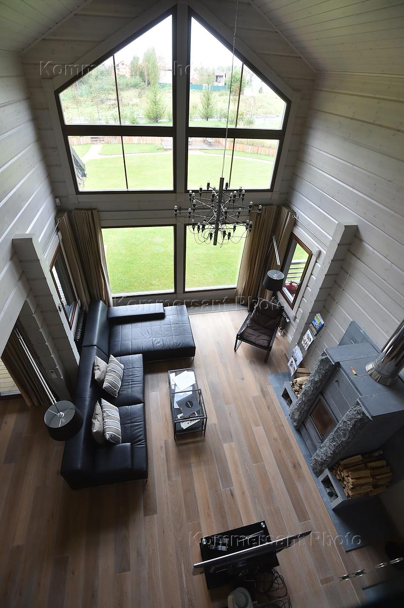 Готовый дом в загородном комплексе Honka Club. Вид сверху на гостиную комнату.