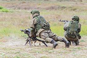 Батальонные тактические учения с боевой стрельбой на полигоне Погоново. Военослужащий во время…