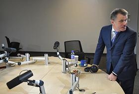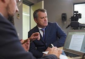 Генеральный директор ЗАО "Газпромнефть-Аэро" Владимир Егоров (справа) во время интервью в студии…
