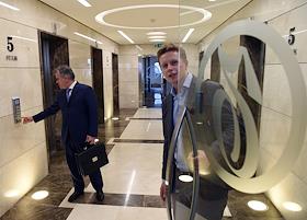 Генеральный директор ЗАО "Газпромнефть-Аэро" Владимир Егоров (слева) после интервью в студии радио…