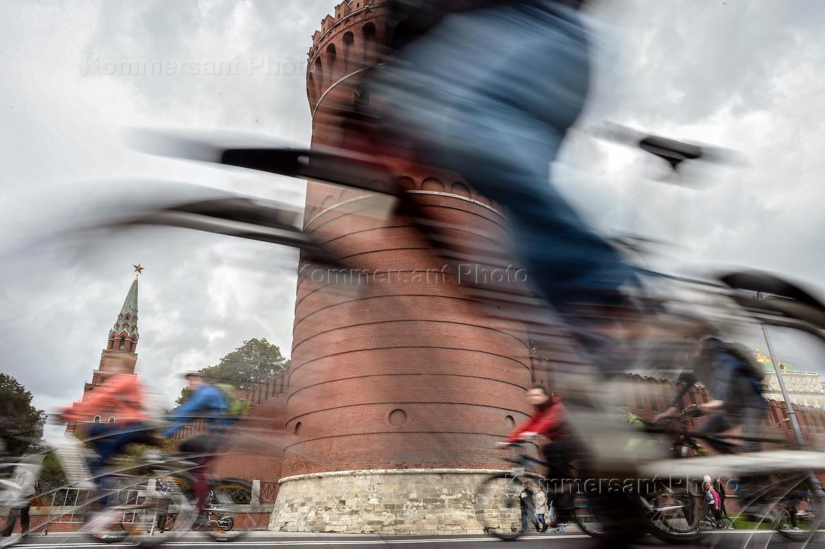 Осенний московский велопарад по набережным столицы.