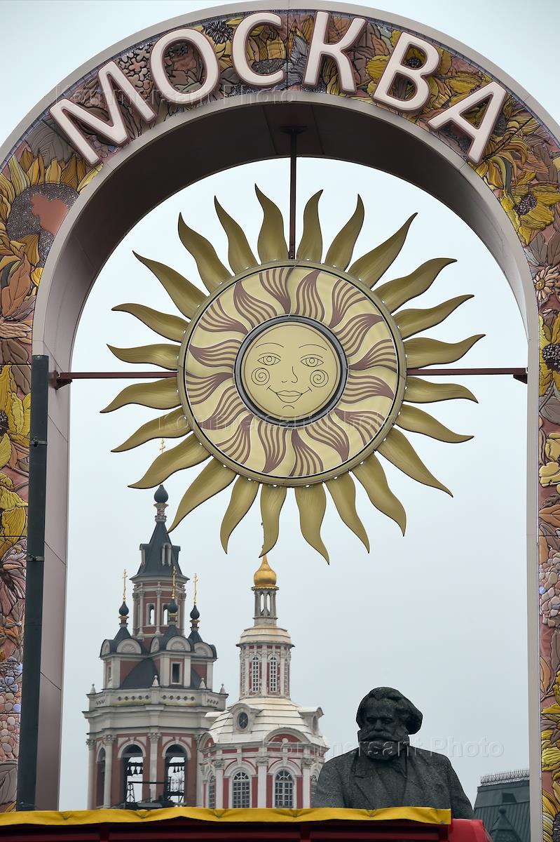 Виды Москвы. Жанровая фотография. Памятник общественному деятелю Карлу Марксу сквозь арочную…