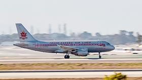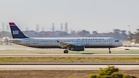 Самолет авиакомпании American Airlines US Airways (CШA) во время посадки в аэропорту Лос-Анджелеса.