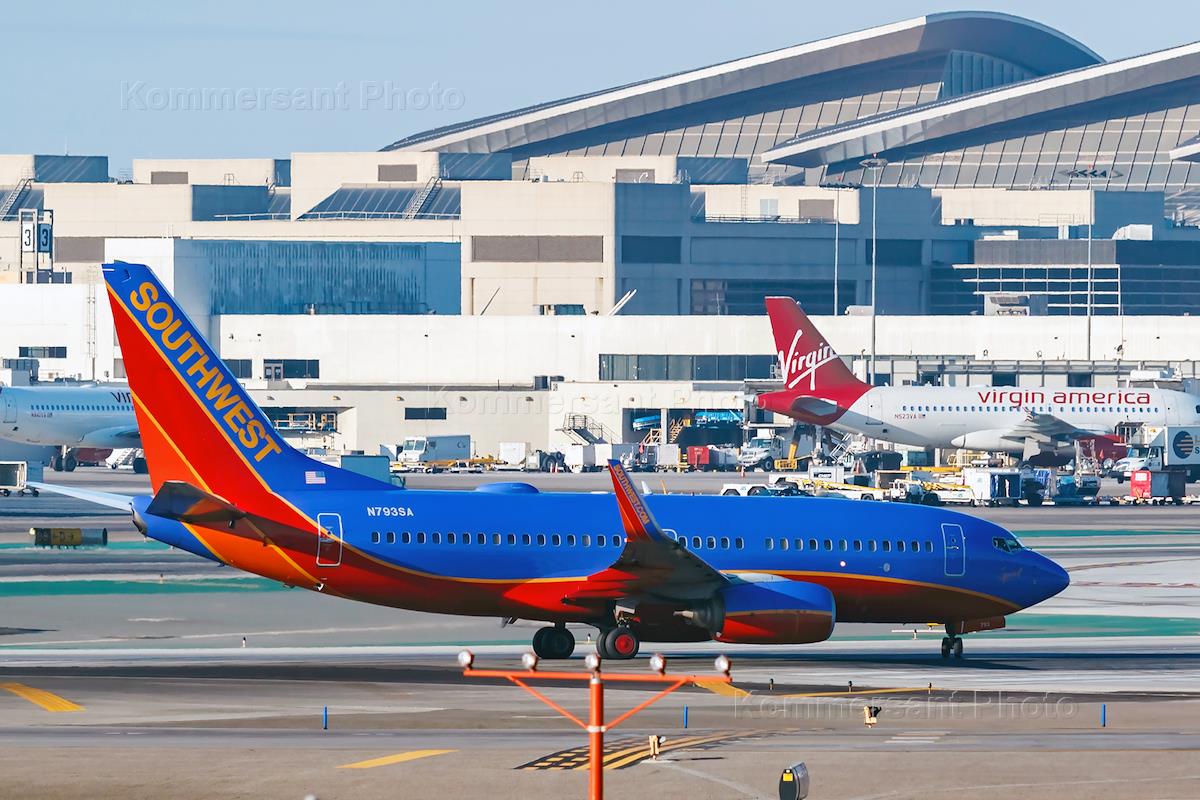 Самолет авиакомпании Southwest Airlines (CША) на взлетной полосе аэропорта Лос-Анджелеса.