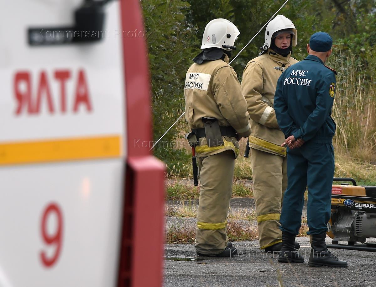 Сотрудники МЧС России у места затопления плавучего крана в Черном море в 4 км от Ливадии. Авария…