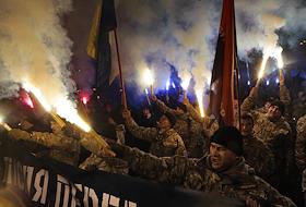 Общество Марш нации, приуроченный к 74-й годовщине создания Украинской повстанческой армии (УПА), в котором приняли участие несколько тысяч представителей полка "Азов" и "Правого сектора", прошел от монумента Родине-матери в Киеве до центра города.