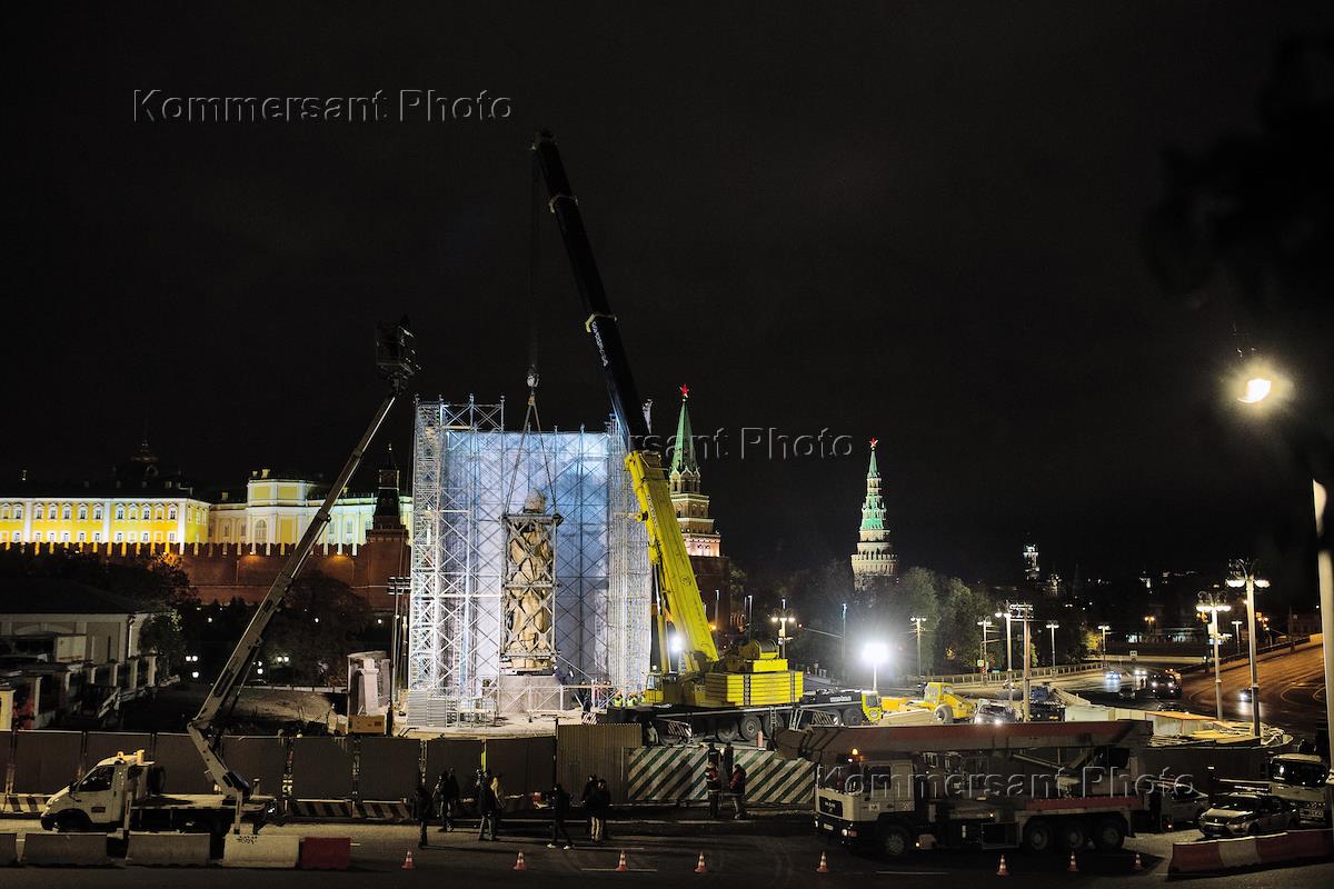 Установка памятника князю Владимиру на Боровицкой площади.