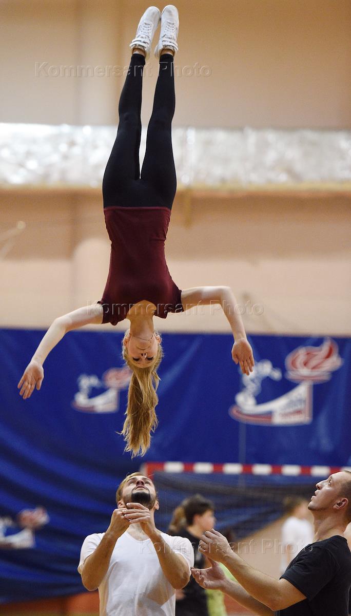 Ученики тренера по акробатическому рок-н-роллу Ивана Сбитнева во время занятий в спортивном зале.