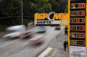 Жанровая фотография. Стойка с ценнами на автозаправке "Бром-Нафта".