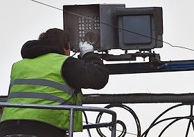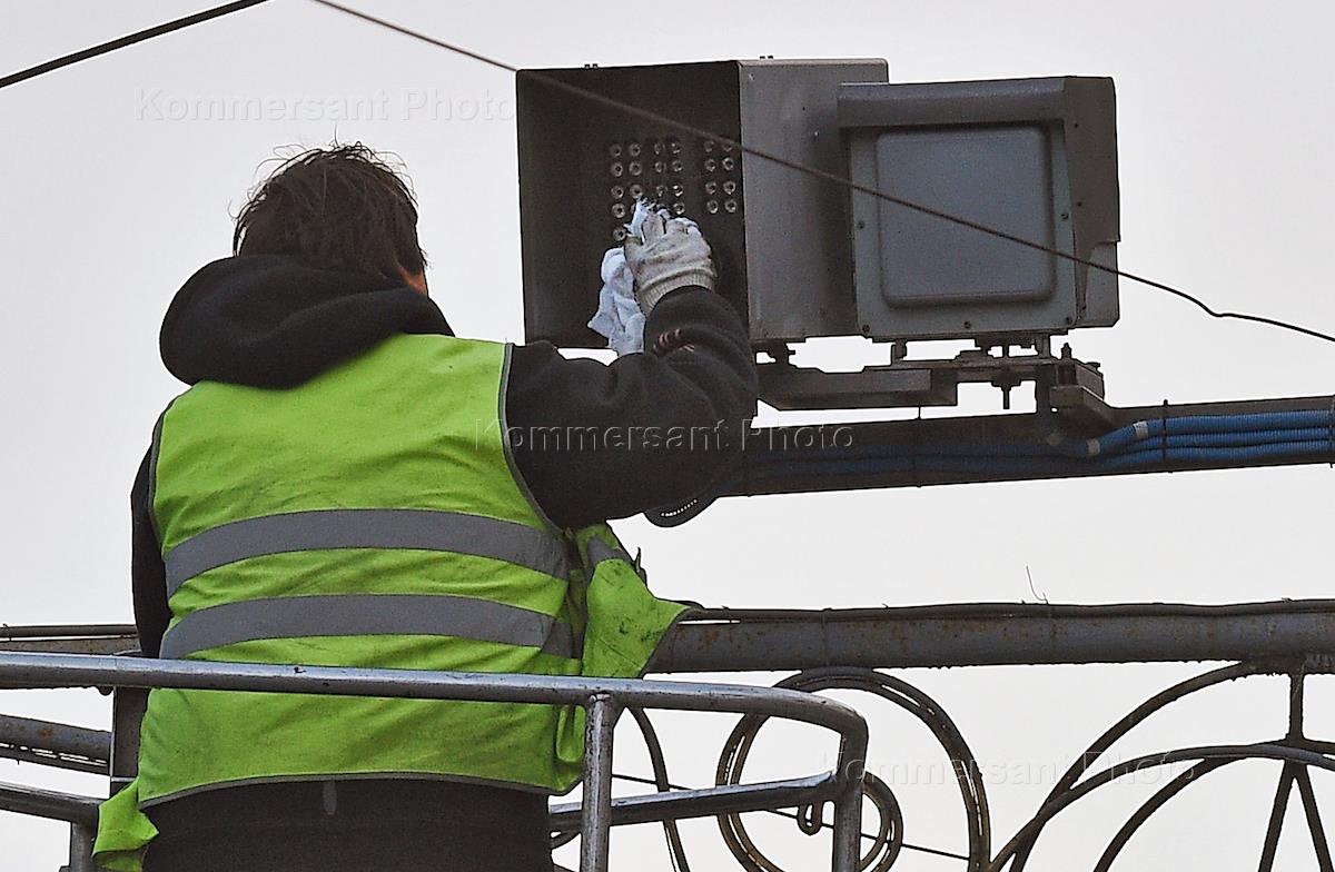 Жанровая фотография. Специалист по обслуживанию видеокамер дорожного наблюдения за работой.