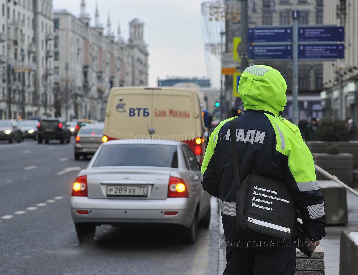 Жанровая фотография. Сотрудник Московской административной дорожной инспекции (МАДИ) на Тверской…