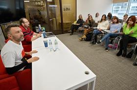 Лидер группы "Ленинград" Сергей Шнуров в Академии журналистики Коммерсантъ.